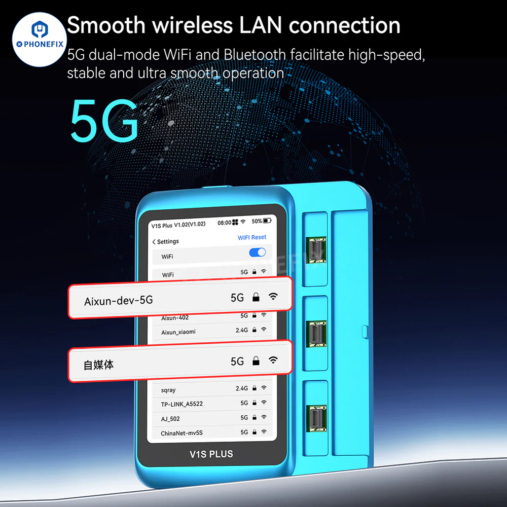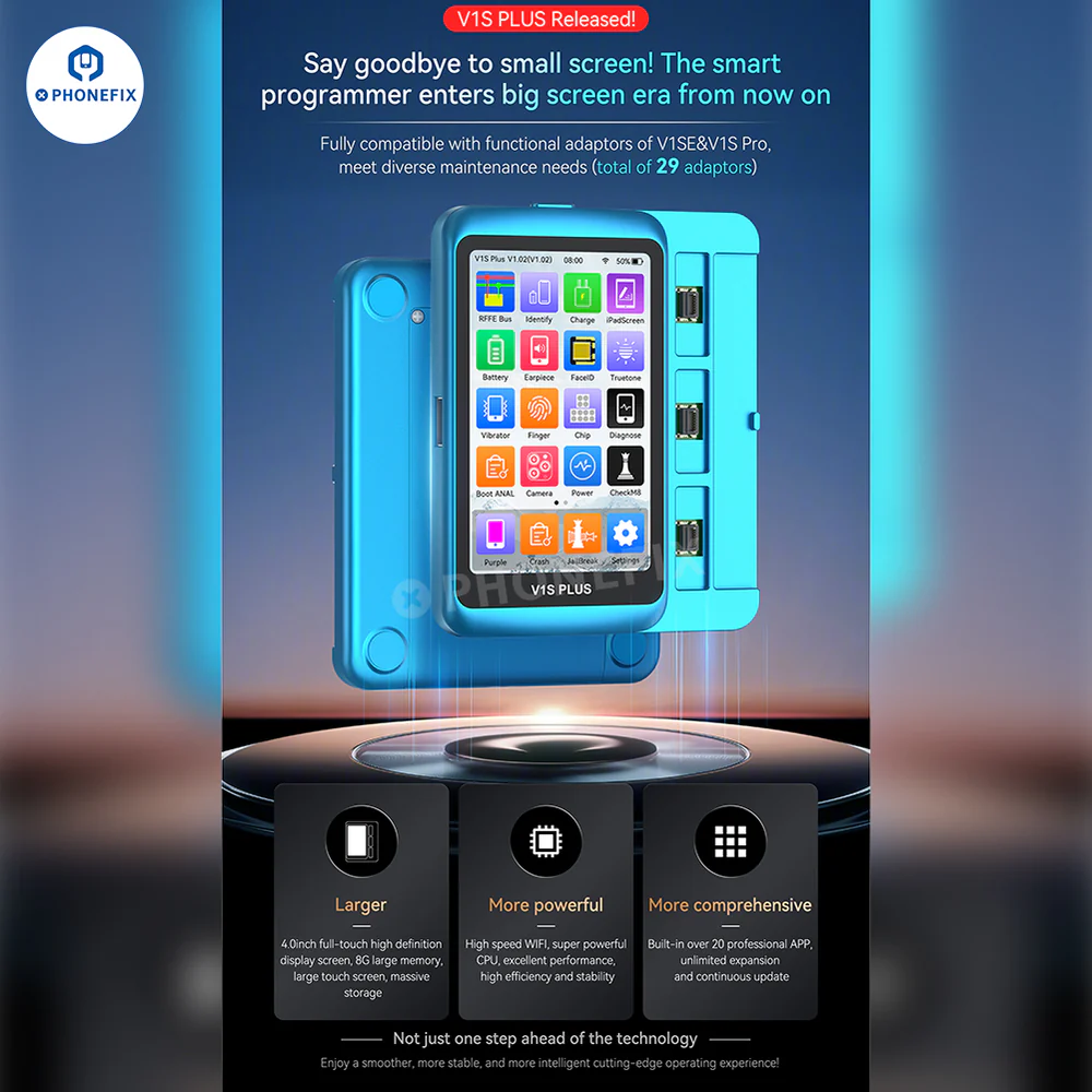 JCID V1S Plus Smart Programmer for iPhone 8-16 Pro Max Repair. JC V1S Plus Programmer for iPhone screen true tone/battery/face ID/receiver FPC/vibration data/rear camera/iPad screen and fingerprint SN data read write repair. It can swiftly resolve common hardware issues and supports both online&offline operation modes.