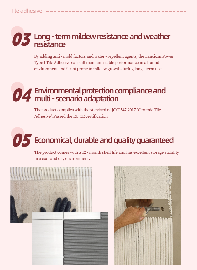 It has excellent water resistance and weather resistance, making it suitable for damp environments such as kitchens and bathrooms as well as outdoor tiling scenarios.
