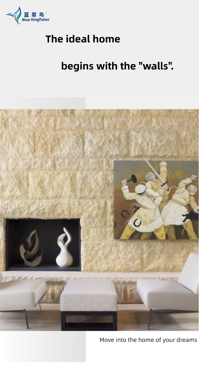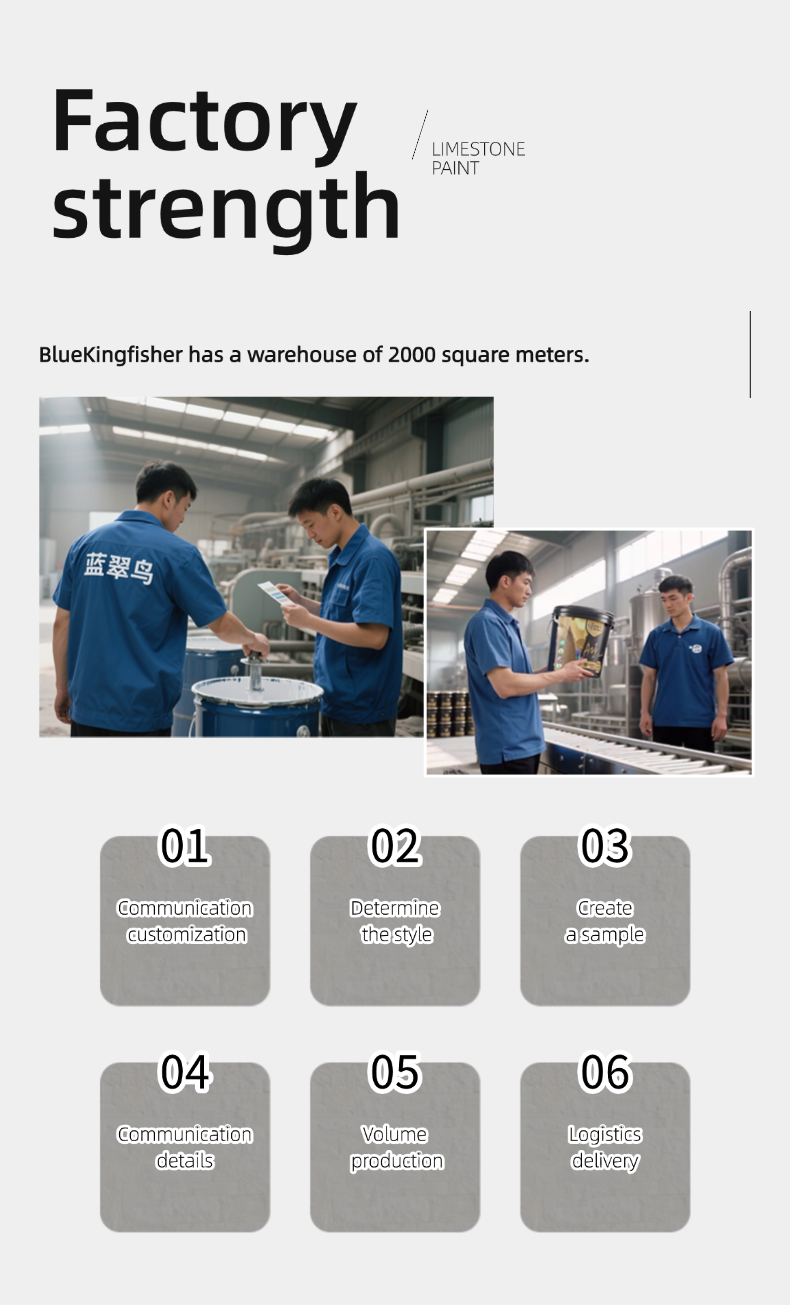 Lime stone wall texture paint has unique texture and beautiful effect. Blue Kingfisher brand high-quality product