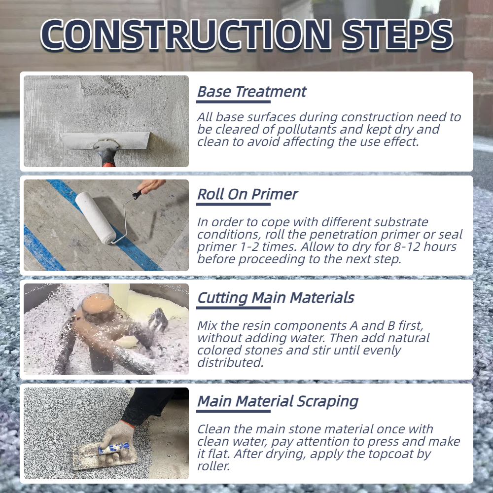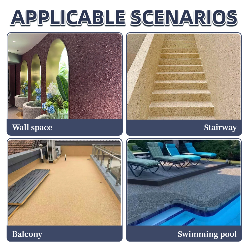 Blue Kingfisher Waterless Resin BoundStone is a revolutionary decorative material. Its core "one-scrape molding" process completely overturns the complex construction process of traditional washed stone. It can quickly create a strong, wear-resistant decorative surface with a natural stone texture on walls or floors, doubling construction efficiency. It not only achieves a balance between convenience and aesthetics but also boasts excellent stain resistance, providing an efficient and reliable ideal solution for modern space decoration.