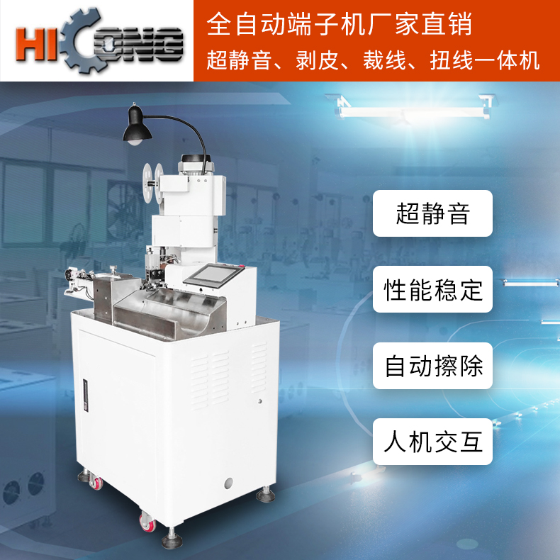 全自动端子压着机,采用高科技变频技术,电子精准定位,压着时焊接机工作噪音比传统端子机更小,且省电,变速更方便快捷,避免了传统端子离合器、线头压着机