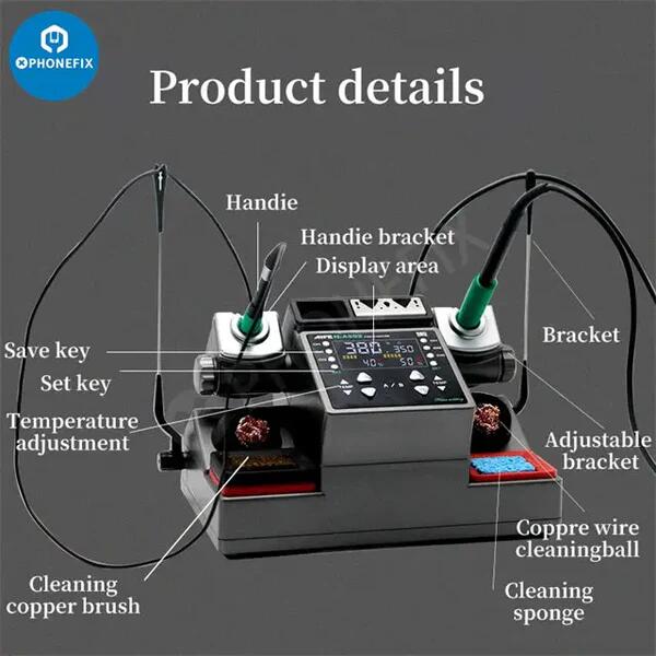 1. 精密一体化焊台,双工位设计,兼容115/210/245/470发热芯。
