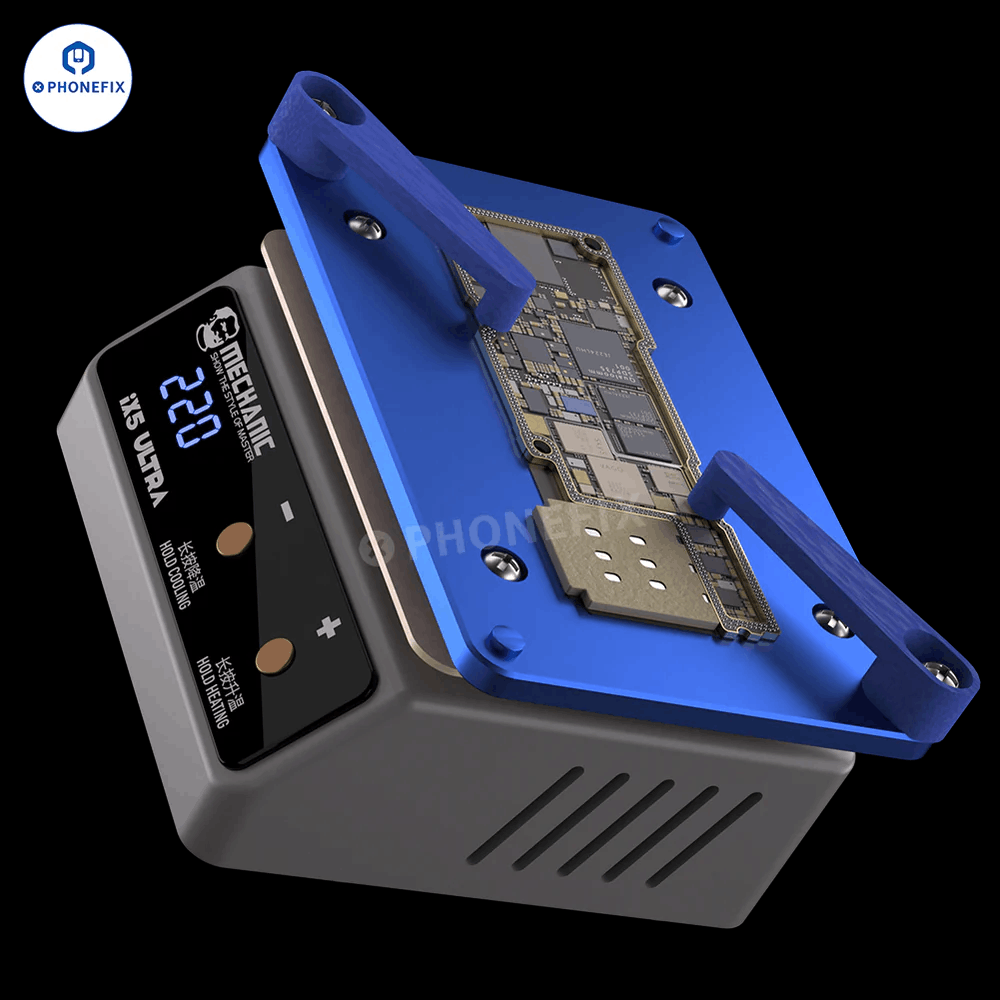 Mechanic IX5 Ultra 通用手机主板预热台,适用于植锡/脱胶。Mechanic 突破性 IX5 Ultra 加热平台恒温主板焊接台适用于所有尺寸的手机主板,例如 iPhone X、iPhone 15 Pro Max、华为、三星、小米以及其他安卓手机。