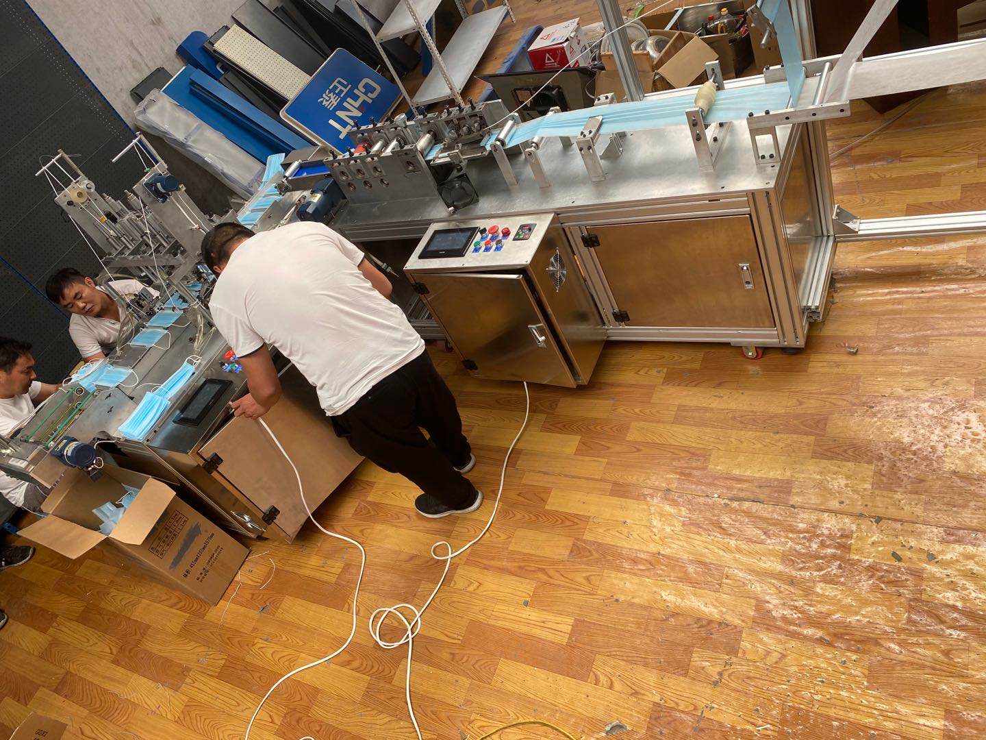 We know that the medical mask is composed of the mask body and ear band, the traditional medical mask machine is made of a machine that produces the mask body, which is then welded by the inner/outer ear loop welding machine. In order to realize the perfect cooperation between the machine and the automatic weld ear loop, also achieve maximum efficiency of the production line, we need to link one mask blank machine and one ear loop welding machine work together.