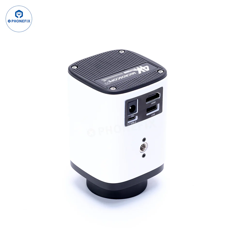 4K 超高清摄像机,集成光源和显微镜镜头于一体(一体式显微镜),采用 829 万像素 1/2.8 英寸索尼 CMOS 传感器,适用于手机主板 BGA CPU IC 焊接和维修。配备 HDMI USB 输出、4K 视频录制和摄影等功能。