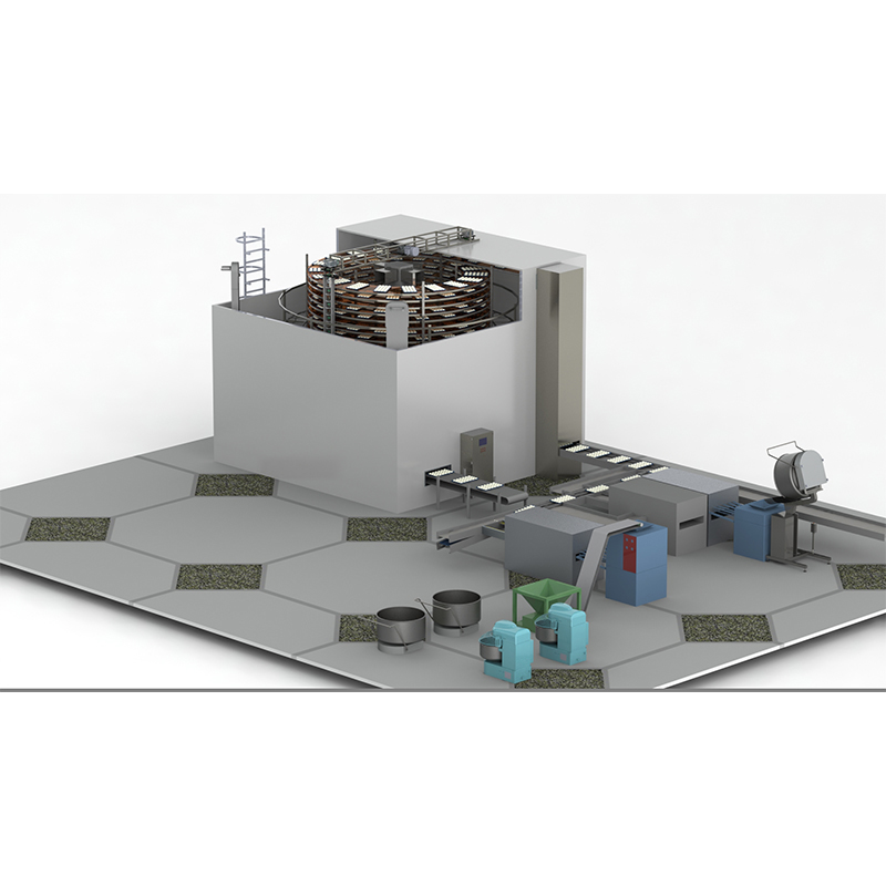 Spirals tower conveyor for room-temperature cooling or forced cooling, freezing and fermentation. spiral fermenting room is the ideal device for automatic Industrialized bread Production, which can be integrated to the complete set of product line