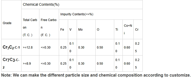 | Powder Metallurgy Chromium Carbide Additives | Chromium carbide powder is silver gray in color and is an important metal-ceramic material with the chemical formula Cr₃C₂. It has high hardness ... | |