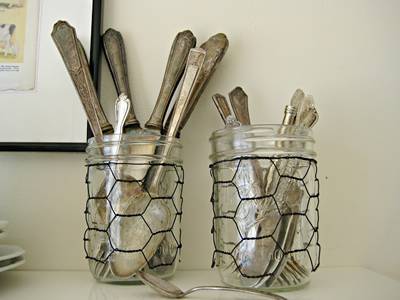 CWL-14:Wrapping mason jar with chicken wire, place brushes or other little things inside it, to achieve both collect and decorative effect.