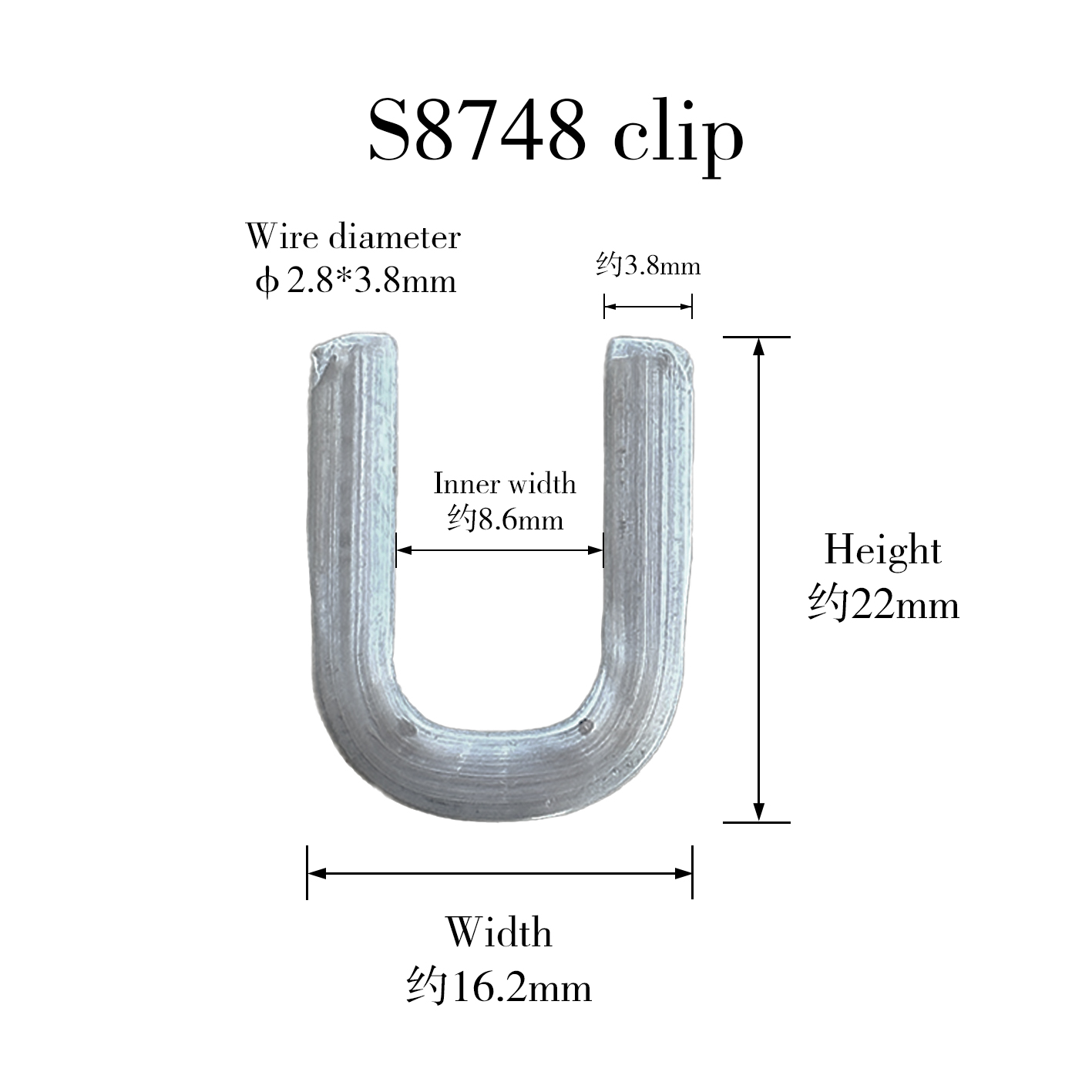 产品详情1.我们的U型夹适用于全国各品牌的打卡机、剪切机和夹子包装机,如TIPPER TIE、POLY、KOMPO等品牌。2.可以夹持各种... |