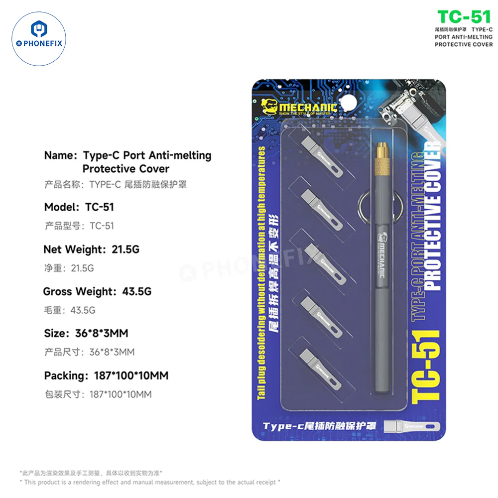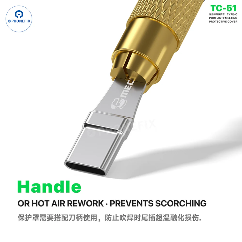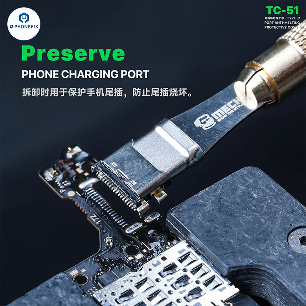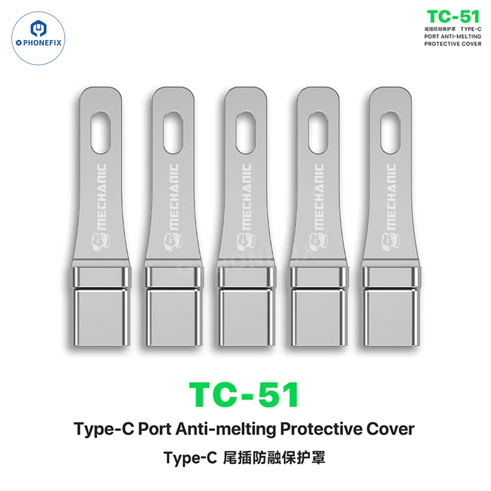 MECHANIC TC-51 Type-C接口防熔保护罩,专为手机硬件维修设计。这款保护罩可防止USB-C接口在高温热风焊接过程中熔化或烧毁,尤其是在更换充电接口时。