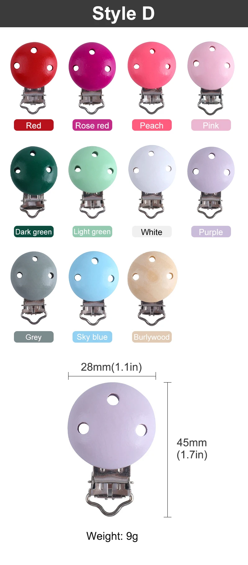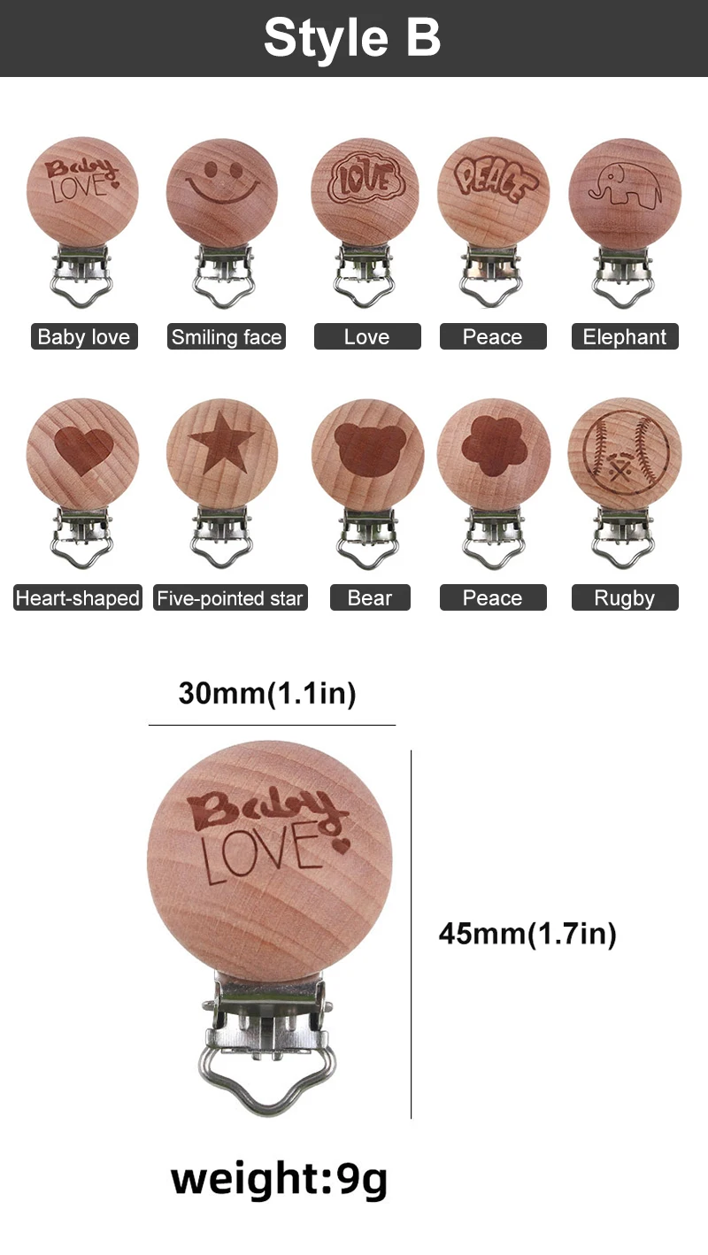 | 批发DIY个性化链奶嘴奶嘴夹适合大多数奶嘴 | Product Description Specification Item Name Pacifier Clip Material Silicone/Wood/Stainless Steel Function Pacifier Clip... |