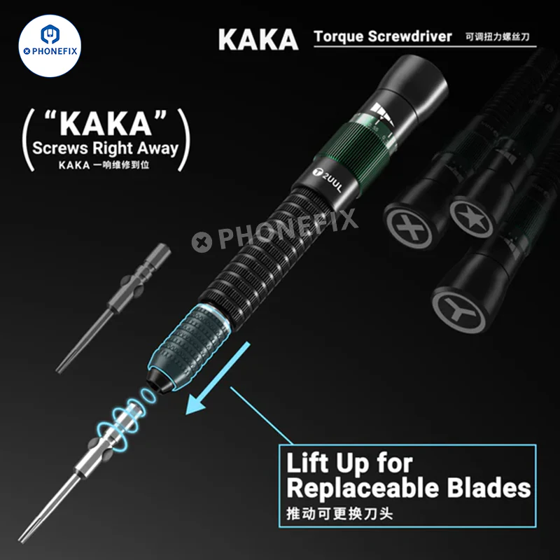 | The Perfect Tool for Disassembling and Assembling Mobile Devices | 卖方: 深圳市维客修科技有限公司 | 描述 2UUL KAKA 可调扭矩螺丝刀,带可更换磁性螺丝刀头,适用于手机、iPhone、iPad 平板电脑和电子产品维修。扭矩保护,磁性吸盘方便拾取螺丝。有效固定螺丝,防止滑落。适用于 iPh... |