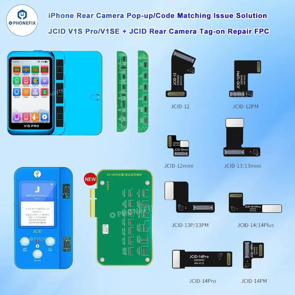 JCID Rear Camera Radar Read Write Adaptor For iPhone 13-14 Pro Max, JCID iPhone 15 series Rear Camera Radar Read Write Adaptor, and JCID Wide Angle Camera Repair Adaptor For iPhone XR-12 Pro Max, works with JCID V1SE and V1S Pro programmer.