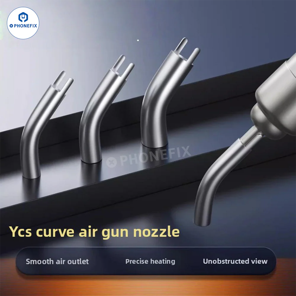 | YCS bending air gun nozzle | Seller: PHONEFIX technology Co.,Ltd | YCS 5mm/6mm/8mm/10mm 弯曲气枪喷嘴可有效解决智能手机维修过程中显微镜曲面部分与物镜之间的空间冲突,确保显微镜下视野清晰无阻。该喷嘴兼容多种热风枪,并可适应不同的工作环境,适用... | |