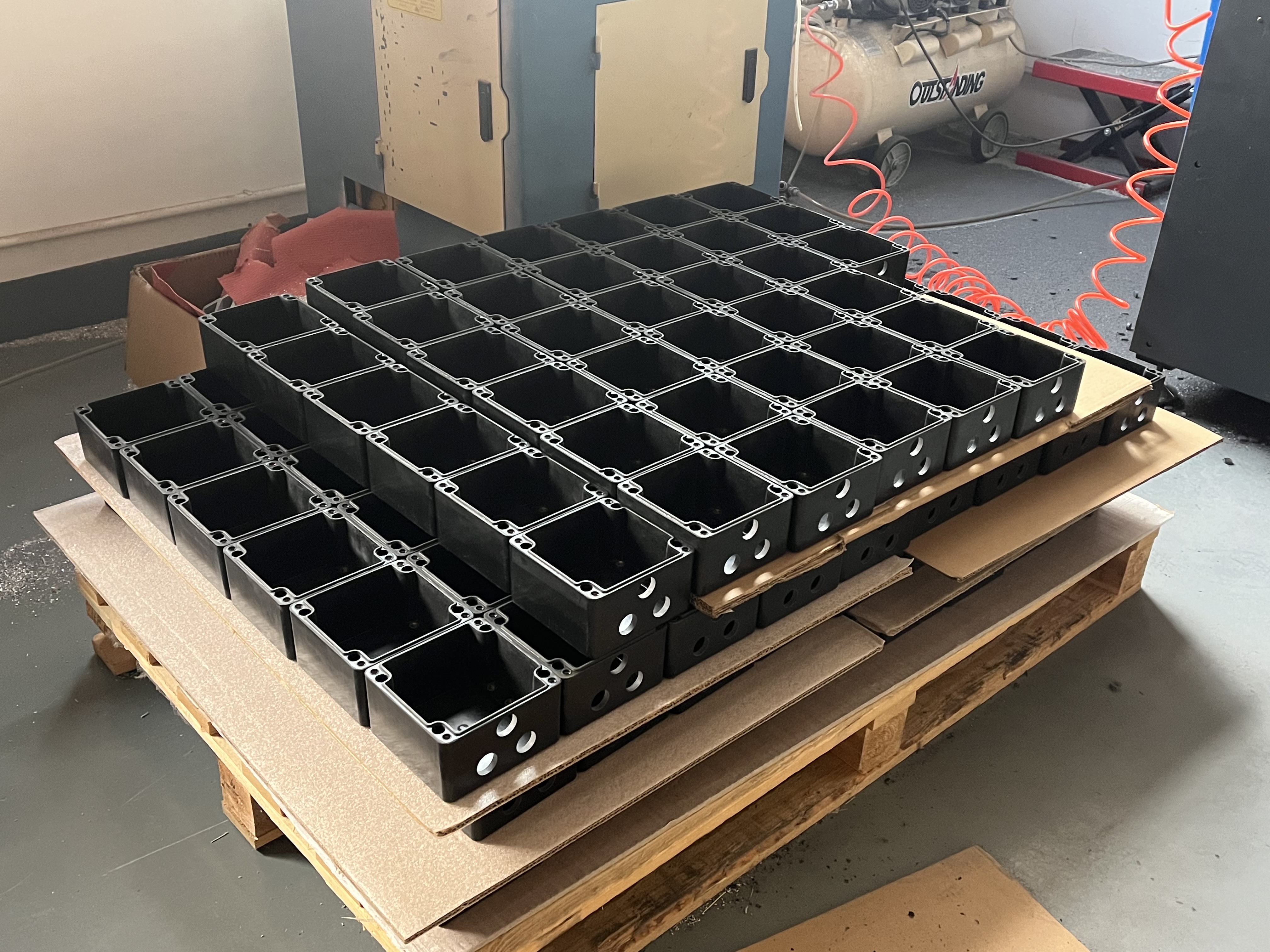 The polyester enclosure is suitable for various industrial workshops, offering reliable protection against corrosive substances and mechanical stress. It features internal threaded bushings for rail and panel fixation, with a four-screw sealing cap design for secure assembly.