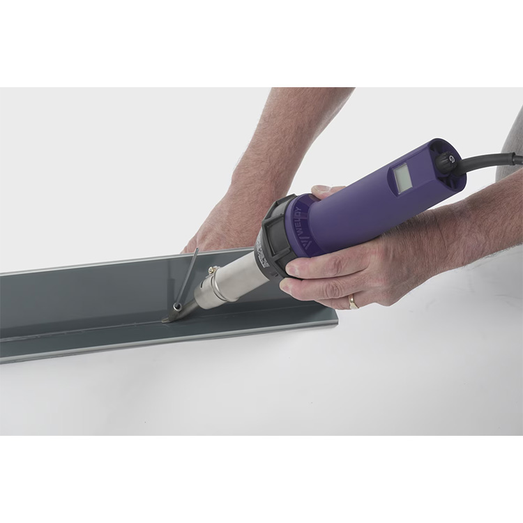 The Weldy HT 1600 heat gun has an LCD display that provides continuous digital temperature control from 40°C (104°F) to 620°C (1,148°F). The main applications for the energy HT1600 D overlap welding kit are overlap welding roofing membranes, shrinking foils, as well as welding floor coverings. Additionally, it’s used to dry and activate adhesives and fillers, shrink car wraps, as well as the process sensitive materials like leather and imitation leather (e.g. car interior).