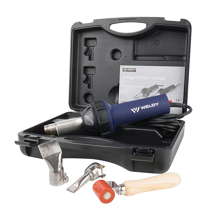 The Weldy HT1600 heat gun is characterized by its stepless temperature adjustment from 40°C (104°F) to 700°C (1290°F). Weldy's five-piece energy HT1600 overlap welding kit is ideal for welding roofing membranes, technical textiles and other thermoplastics such as PVC (vinyl) and TPO in construction, commercial and DIY applications.
