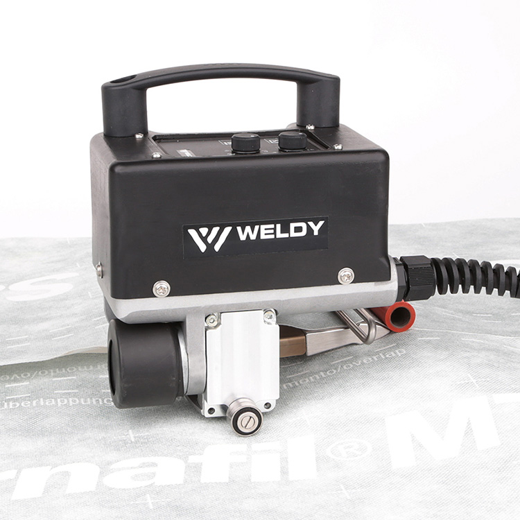 The 4 kg Weldy miniwelder roof2 is extremely light and easy to operate. It can be used on all pitched roofs and is ideal for all PVC and TPO membranes between 0.3 and 1 mm thickness. Welding temperatures between 60 and 480°C are continuously variable. An additional advantage is that the membranes do not flap when they are welded. Appropriate for the material, chrome steel, aluminum, or copper hot-wedge ensures safe contact welding. No expensive, toxic solvent-welding agents required