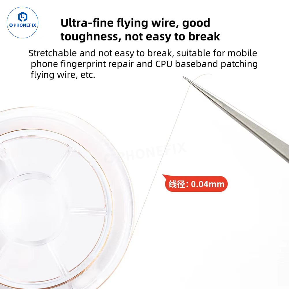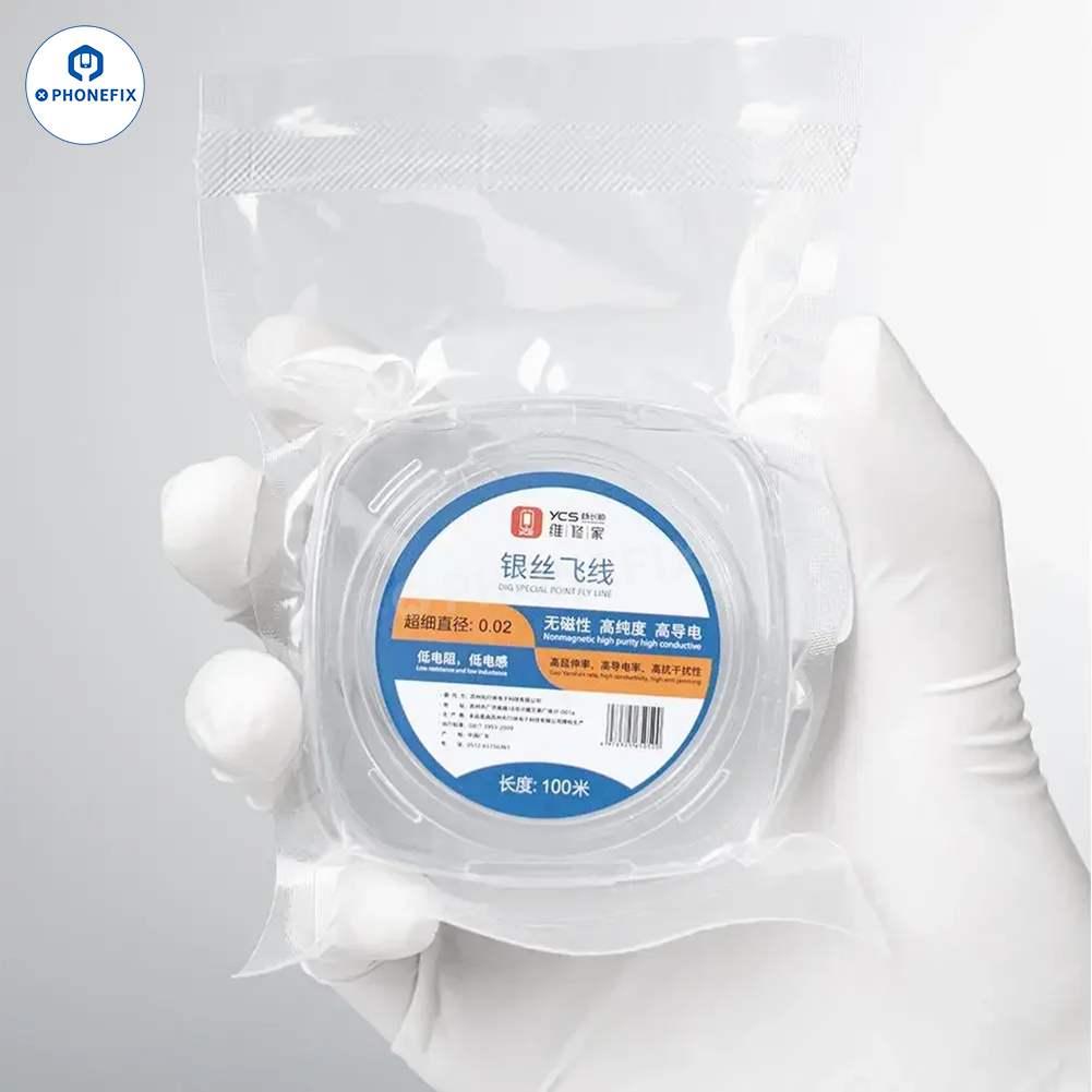 YCS 0.02mm Silver/0.04mm Copper Jumper Wire for Mobile Phone Motherboard PCB CPU Welding Repair. Non-magnetic, good toughness,easy to tin, no breakpoints, low solder resistance. Recommended by YCS Yang for mobile motherboard soldering repair.