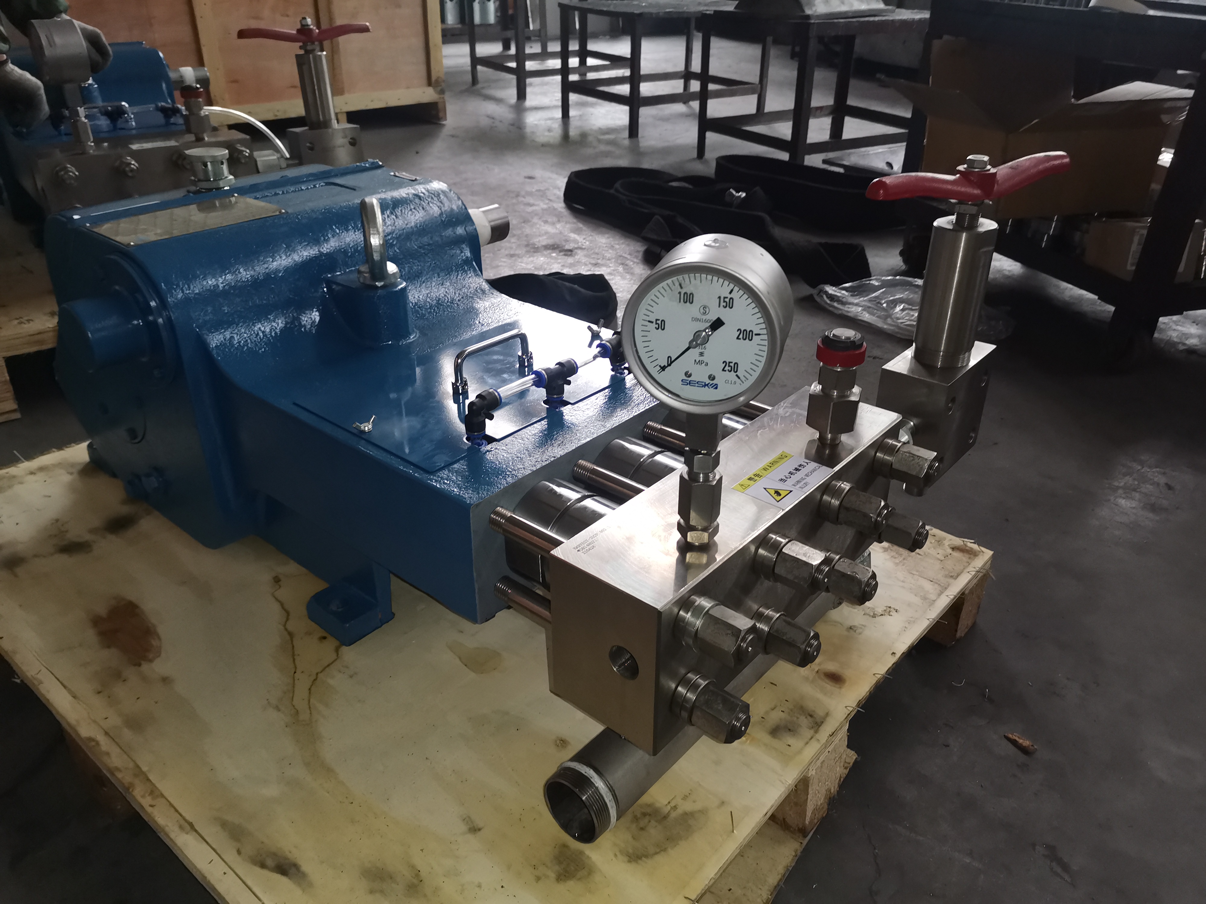 3D2HP-S series high pressure plunger pump is a new high pressure pump independently developed by our company.The input power can reach 90 kw, the working pressure can reach 150 MPa, the packing box adopts the independent circulating cooling technology, optimizes the working environment of the plunger seal, modularized inlet and outlet valve group, and the integral pump head structure, the degree of generalization of components is further improved. This type of pump can be used for cleaning heat exchangers and condensers in power plants, cleaning tube bundles in chemical industry, matching different cleaning executing agencies, and can complete all kinds of cleaning operations under 100-150 MPa working conditions, This series of products can transport 0 ~ 50°C water emulsion, as well as other chemical property similar to water liquids.