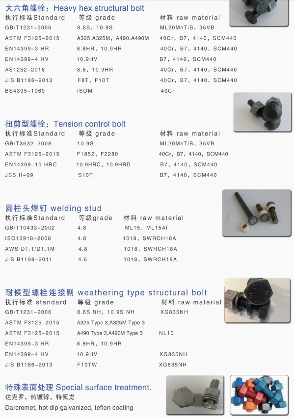 Heavy Hex Bolt(ASTM A325/A325M type1 and type3, ASTM A490/A490M type1 and type3, EN14399-3, EN14399-4, JIS B1186(F10T), GB1228, AS1252, IS3757)