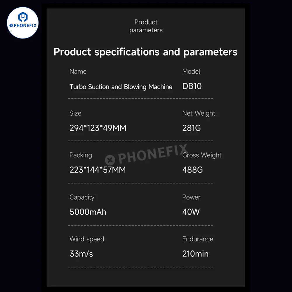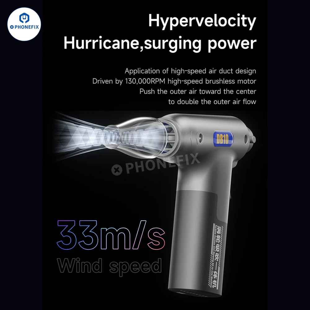 Mechanic DB10 Turbo Blower features 6-speed stepless change suction and blowing for cleaning and cooling electronics such as mobile s and laptops. Full filtration of the dust cup filter, ultra-long battery life, 4200Pa hurricane suction, one suction and clean, easily deal with various dust/dirt/mites/sand/stones/hair, etc.
