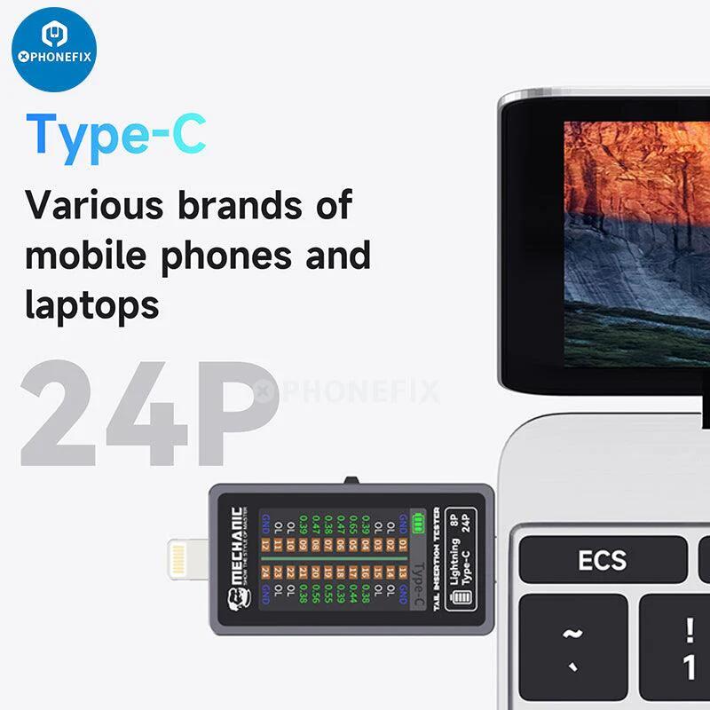 Mechanic T-824 Type-C Lightning interface Tail Insertion Detector for iPhone mobile tablet tail plug detection. 2024 Mechanic Tail Insertion Tester SE (T-824SE). Mechanic T-824 High Precision Digital Display Tail Insertion Tester For Apple iPhone/iPad/Mac Android Phone.