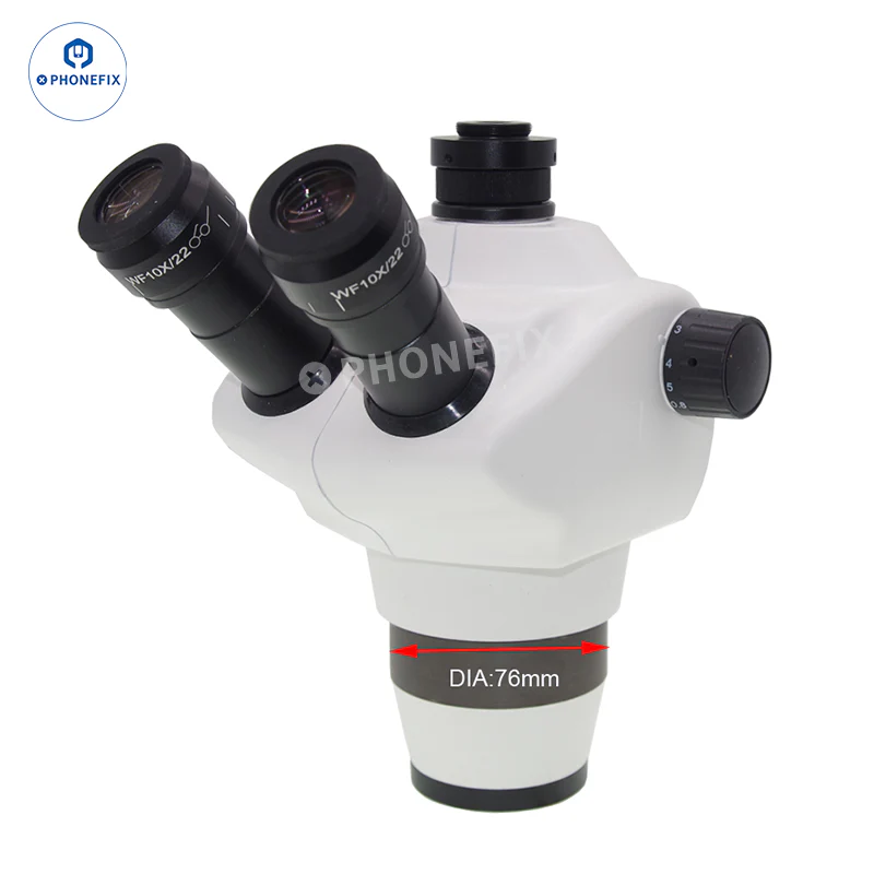 The most common type of Soldering Microscope Heads, Commonly Used SZM7X45 7X-45X Continuous Zoom Trinocular Stereo Microscope Head Replacement. DG7X60 7X-60X/ST8X50 8X-50X /SZ6745 6.7X-45X 360 Degree Rotatable 45 degree Inclined Binocular Microscope Head Replacement. Suitable for cell repair, motherboard repair, soldering desoldering PCB observation.
