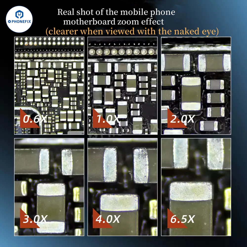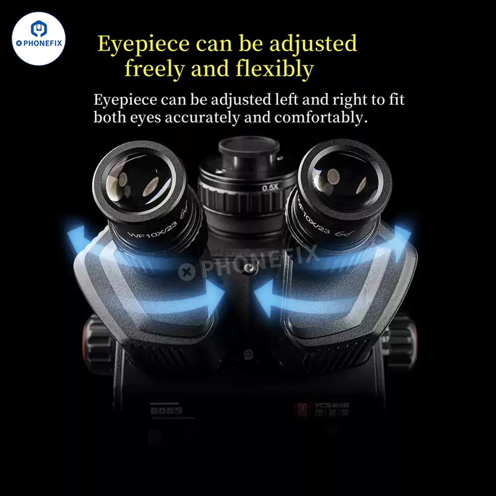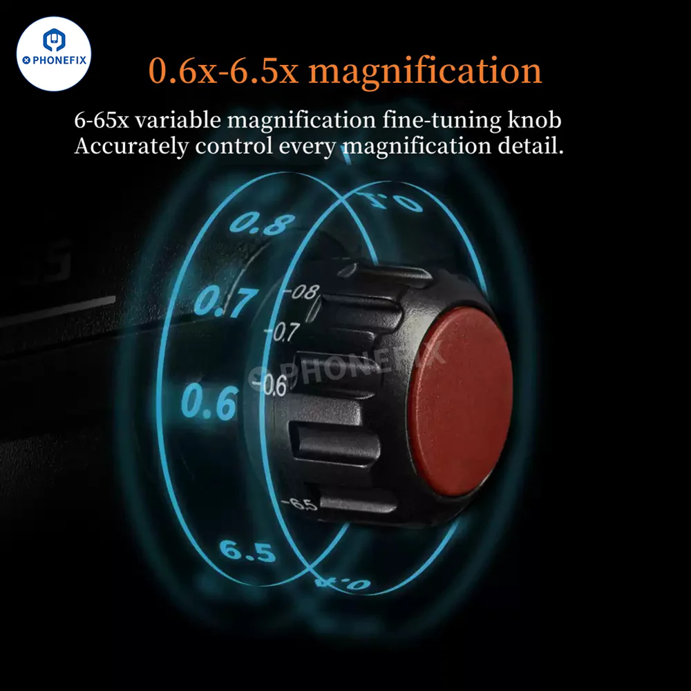 YCS 6065X Trinocular Soldering Microscope has 0.6X-6.5X magnification. Advance mobile technician equipmentkit for PCB Soldering Repair working. High eye point wide angle eyepiece, eyepiece fine adjustment is free and flexible. Applicable in multiple scenes to control microscopic details and focus on microscopic phenomena. Suitable for maintenance, teaching, experiments and other scenarios.