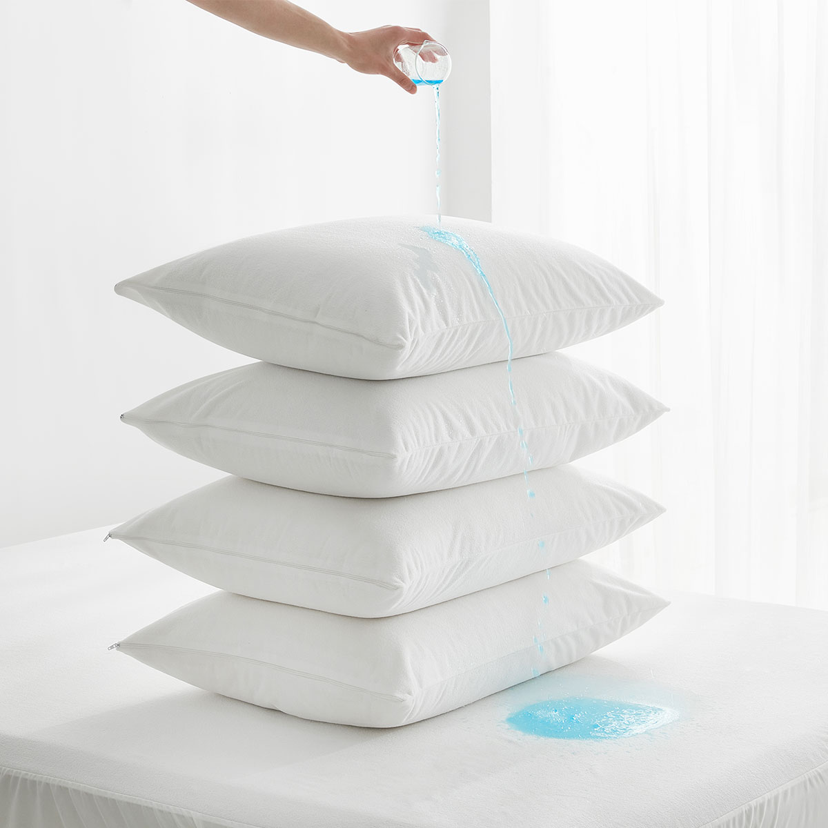 from liquid damage, stains, and hygiene threats—while preserving the comfort of your sleep experience.Unlike generic pillowcases that offer minimal protection, this protector integrates a breathable waterproof barrier with soft, skin-friendly fabrics, balancing functionality (spill/leak defense) and comfort (no stuffiness or crinkling).It acts as a durable shield for expensive pillows (e.g., memory foam, down, latex) to extend their lifespan, while also supporting health by blocking allergens and moisture-related bacteria.Ideal for homes with kids, pets, elderly family members, or anyone prone to nighttime spills (e.g.,coffee,skincare products, sweat),it redefines pillow protection without compromising on sleep quality.