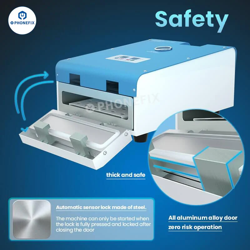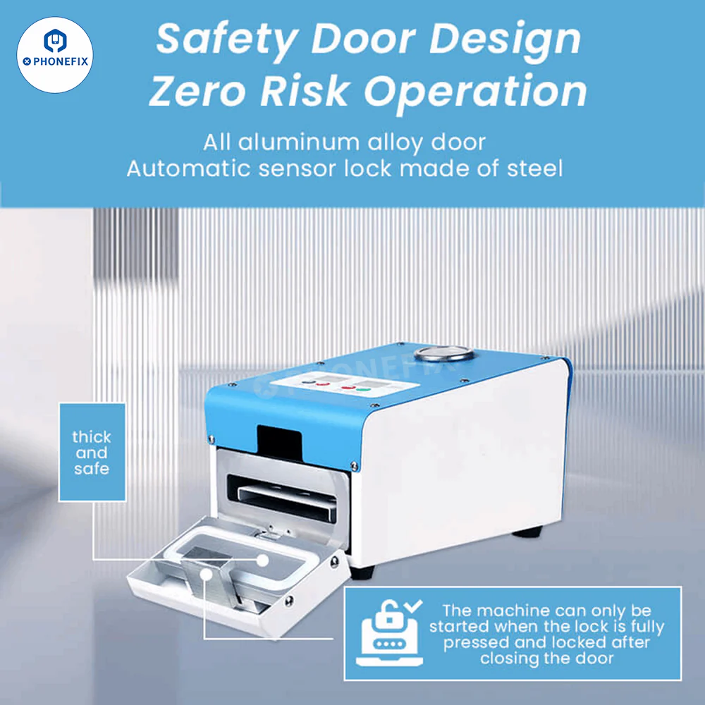 FORWARD FW-16R Bubble Remover and FW-8R Mini Bubble Removal Machine removes screen OCA bubbles during mobile , iPhone, iPad, tablet screen refurbishment process, supports up to 12.9-inch screens. Safety door design, 24V low-voltage air valve configuration, effective noise reduction.