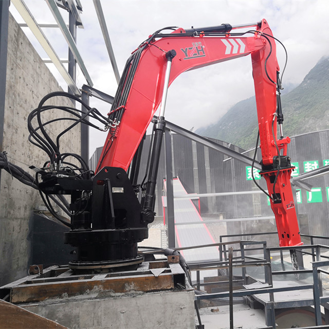 This robot arm is mainly used in the inlet or grizzly screen of all kinds of mines and quarry crushers for secondary crushing of large materials. It can be installed next to the hopper of primary crusher to crush the oversized stones at the grizzly screen mouth, or next to the hopper mouth of truck hopper and tipper, etc. It can effectively solve the problem of jamming and clogging in crushing production line, and improve the output of the crusher in the initial stage by up to 20%.