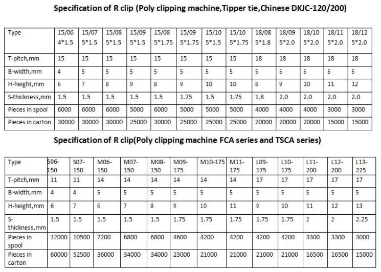 | 15-9/5x1.5 R Sausage Clips Sausage Casing Clips | Company Name: Lukuan Machinery Place of Origin: China Application: Food or bag packaging Size: 15mm×9mm Width: 5mm Thickness: 1.5mm Shape: R-... | |