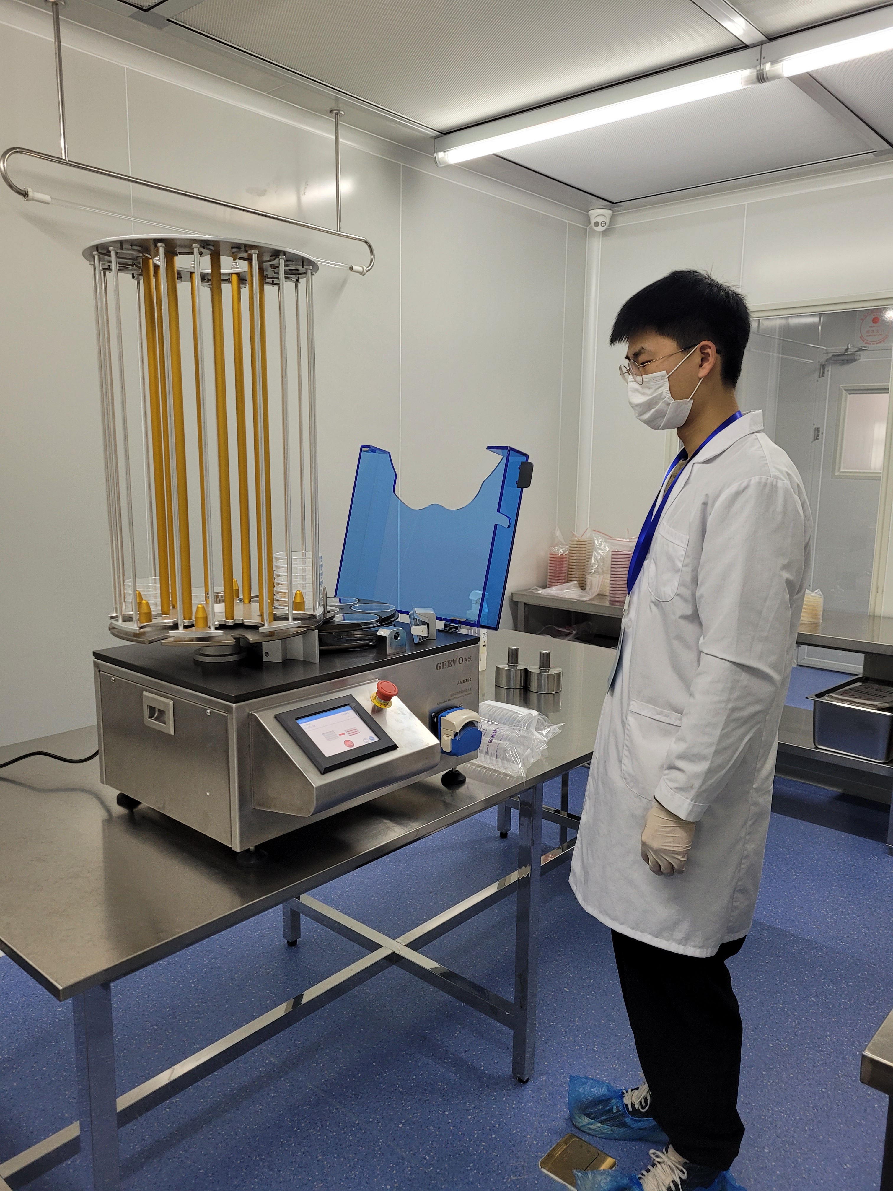 AMD system dispense the sterile hear retaining media pumped into the empty dishes through sterile tube automatically.