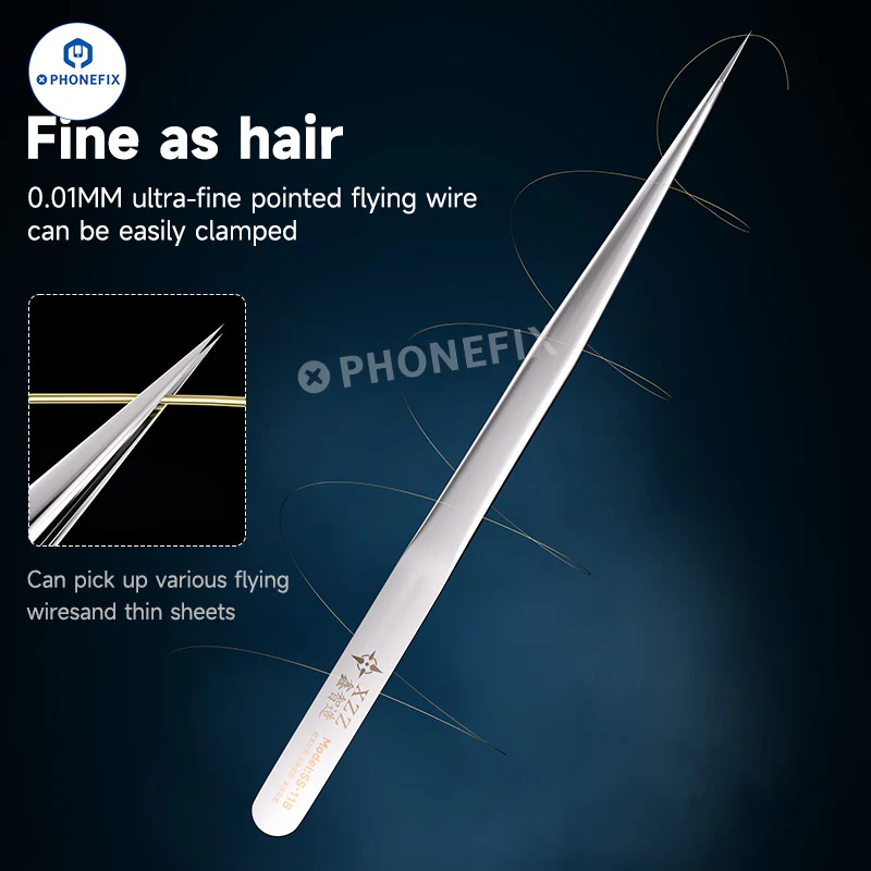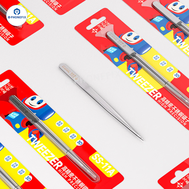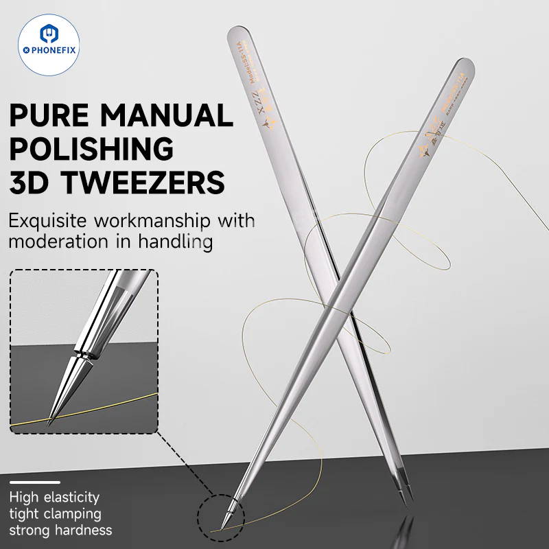 XZZ SS-11A SS-11B SS-11C High Precision Stainless Steel 3D Tweezers with 0.01mm Pointed and Non-slip Handle for Mobile Phone iPhone iPad Tablet and Computer Repair. Stainless steel anti-corrosion 0.01 mm ultra-fine tip tweezers are suitable for clamping small parts of mobile PCB and jumper wires, etc.