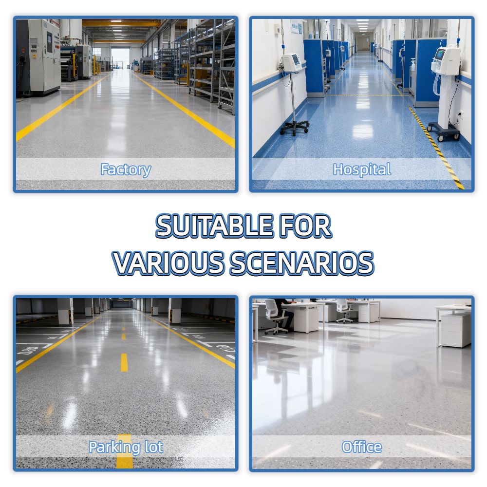 If you have multiple floor procurement needs in different scenarios, the multi-functionality of Blue Kingfisher epoxy colored sand self-leveling can simplify the procurement process, reduce supply chain management costs, and improve procurement efficiency. If you need a comprehensive cost analysis, please feel free to contact our team to develop an overall plan.