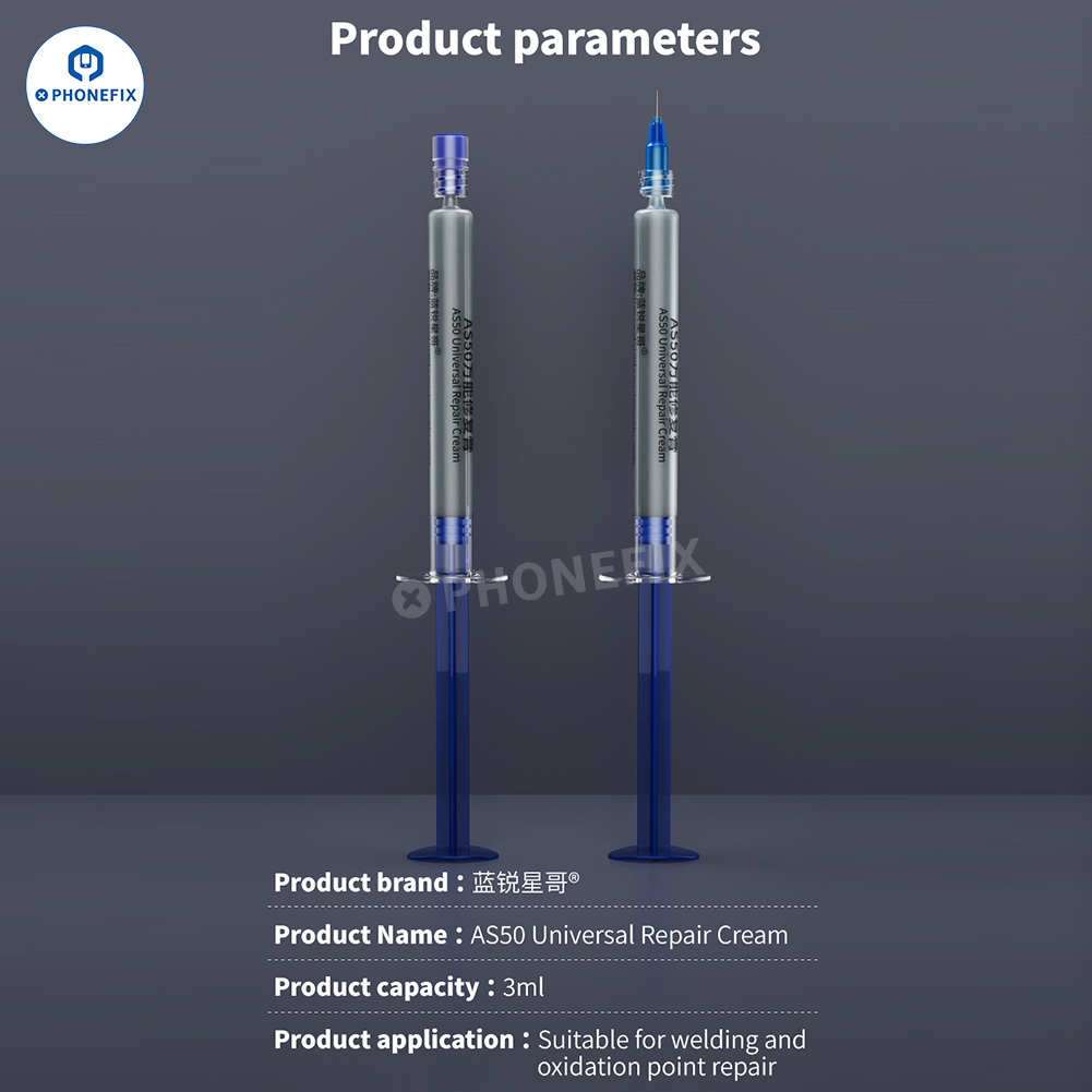 LANRUI AS50 Универсальный ремонтный крем для удаления пятен окисления на материнских платах мобильных телефонов/iPhone, пайки разъемов FPC, сварки защитных крышек, лужения и удаления олова с ЦП и т. д. Паяльная паста AS50 используется для сварки печатных плат для удаления следов окисления и улучшения эффекта сварки винтовых колонок и чипов.