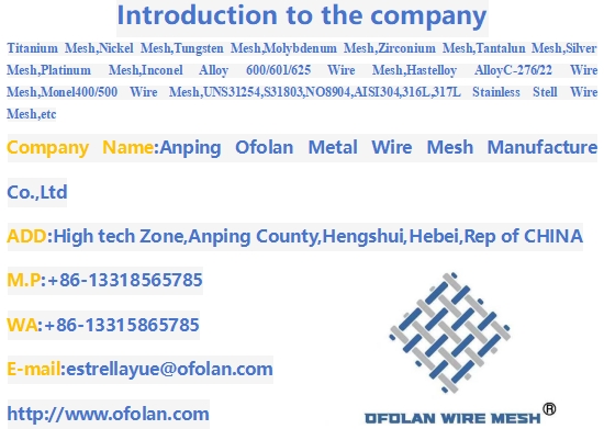 | Nickel Wire Mesh Bulk Wholesale Industrial Supplies | Product Description: OFOLAN Nickel Mesh Products Material of Nickel Wire Mesh nickel wire mesh Pure Nickel wire diameter ... | |