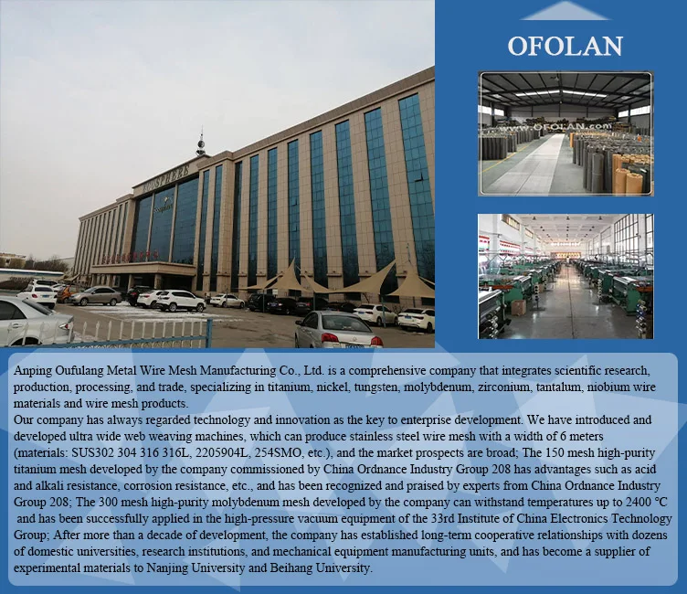 | Certified Zirconium Mesh Plate Wire Circular for Nuclear Aerospace Military Applications | Product NameModel: Zr-1, Zr-3, R60702, R60705, etc.Mesh Size: 5Mesh-200MeshWire diameter|thickness: 2.0mm-0.03mmWeaving Method: Plain Weave, Twill ... |