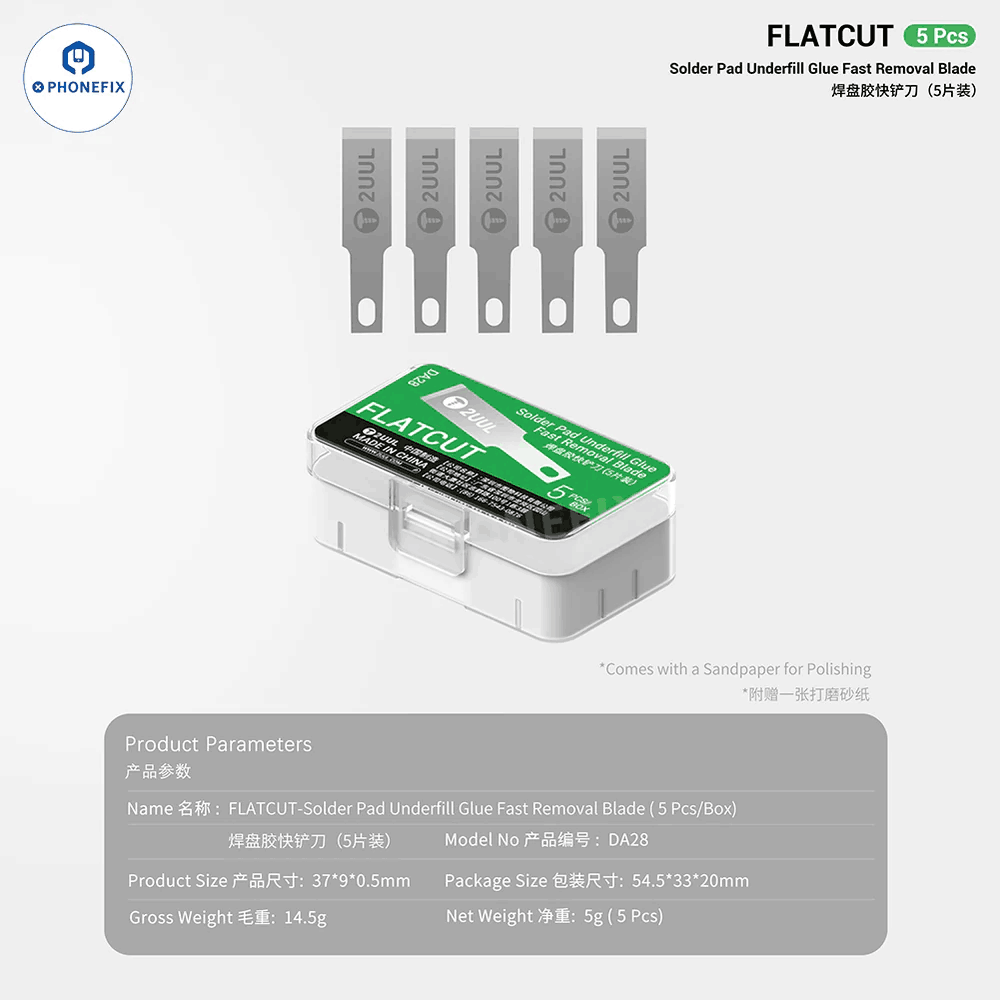 2UUL DA28 FlatCut Mobile Phone Filling Glue Quick Removal Blade Suitable for Mobile Phone PCB CPU IC Glue Cleaning and Removal