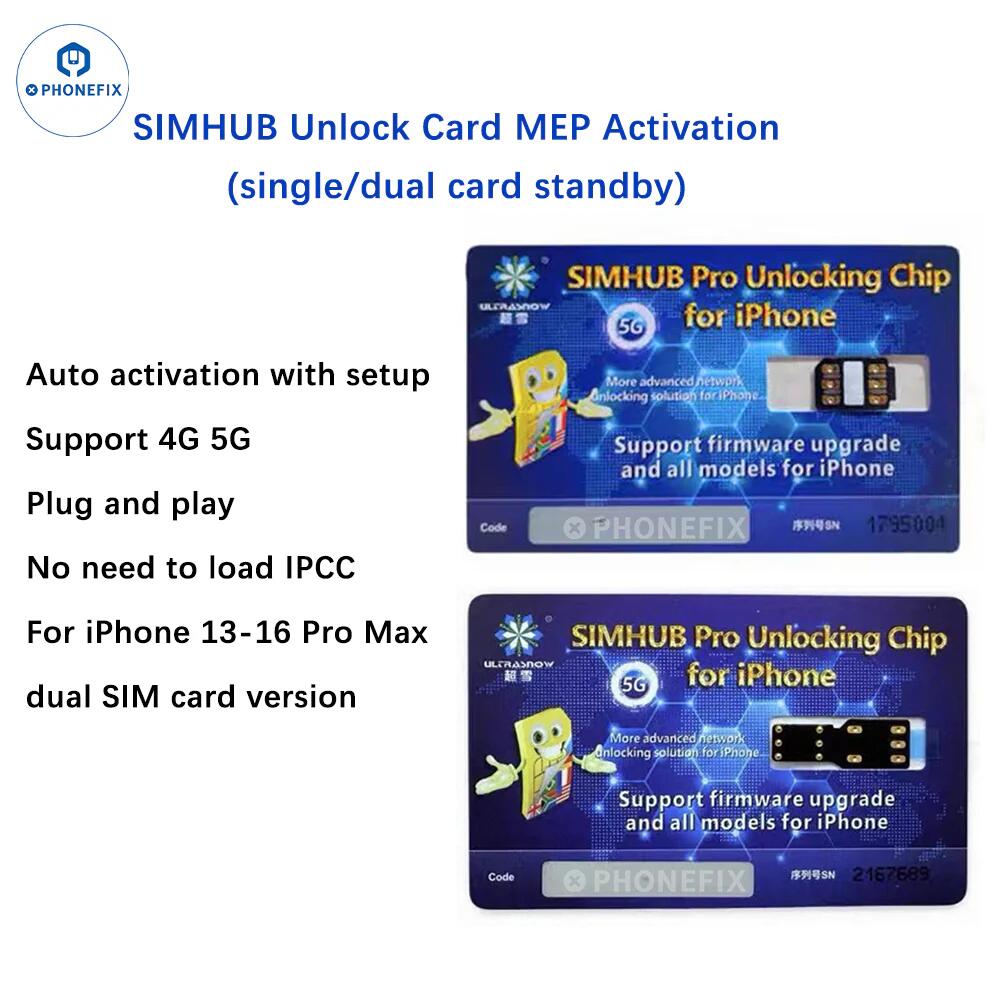 ULTRASNOW SIMHUB Pro 5G Unlock Card Sticker MEP Activation for Unlocking and Restoring iPhone 13-16 Pro Max Cellular Network