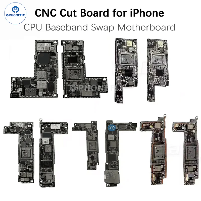CNC Cut Motherboard for iPhone 13/14/15/16 Pro Max CPU Baseband Swap Repair. Replacement iPhone CNC Drill Polishing Board upper and lower layer iCloud motherboard with Nand Flash Chip for iPhone CPU Baseband Swap Repair.