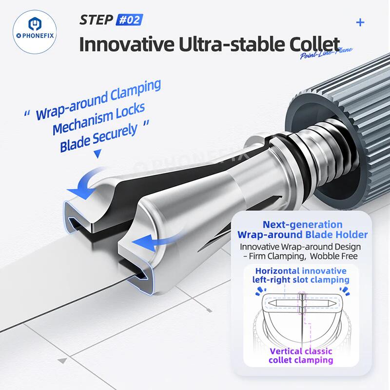 1. This blade handle utilizes a next-generation wraparound chuck design, ensuring a more secure, less wobbly blade and precise clamping for stable operation.