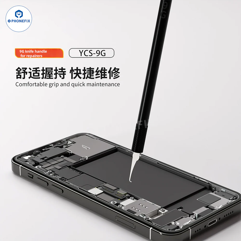 YCS 9G Ultra Light Wooden Knife Handle with blades set for mobile CPU Nand chip removal and glue cleaning removal. Imported materials and hand-polished blade, non-slip textured handle, matte finish provide exceptional durability and sharpness, making it ideal for mobile repair and electronic circuit repair, such as CPU Nand chip disassembly and glue removal, etc.