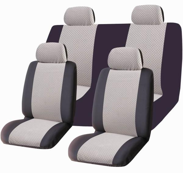 8pcs set,including 4pcs headrests,2pcs front car seat covers, 1pc rear seat and 1pc rear back,100% tweed material,3mm foam.